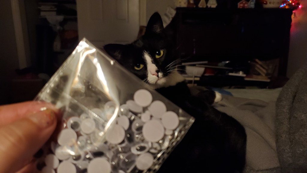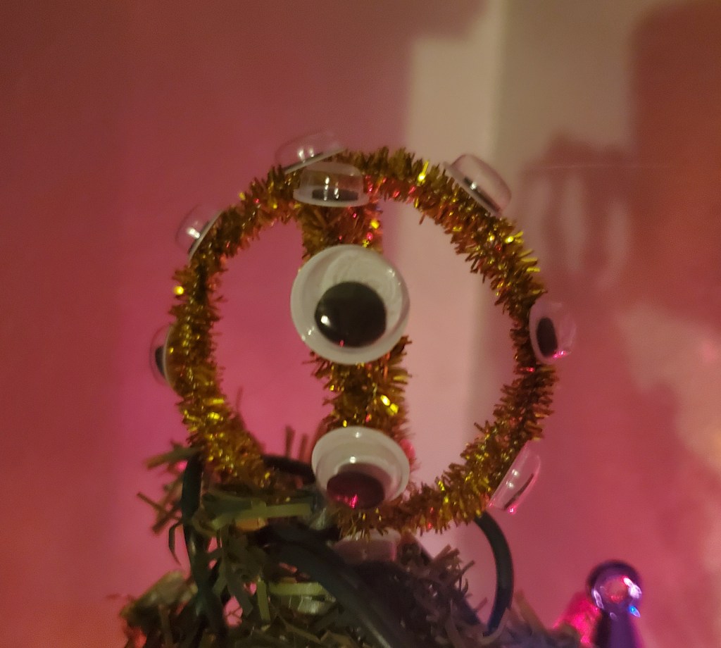 I saw someone on Twitter post a photo of their diy angel tree topper. It was a gold ball, covered in beautiful, realistic eyes. I loved the idea and wanted to make my own.