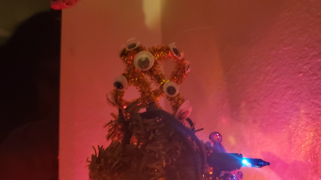 I was much happier with this version, and decided to put it on top of the small Christmas tree we have next to the television in our room.